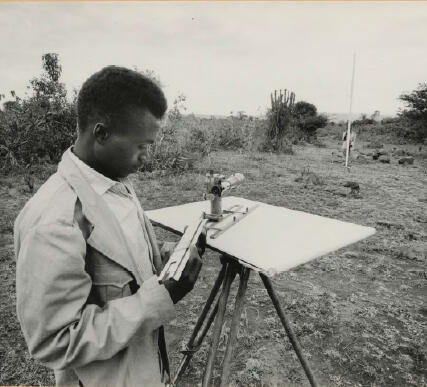 Nationalist Tom Mboya speak to reporters in 1960 (source OAH archive)